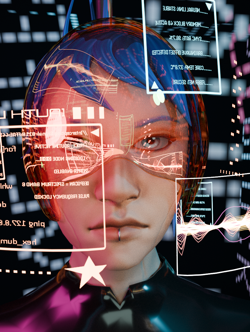 A cool hacker lady made in Blender for 3D Modelling with Blender jam #2 with the theme of Cyberpunk. I learned a lot making this, what I thought was a pretty simple idea ended up having a lot of stuff to figure out (my first retopo ouch). It was a lot of fun to make and I'm pleased with the result even though there's still some weirdness going on in places~ thank you for checking it out!
